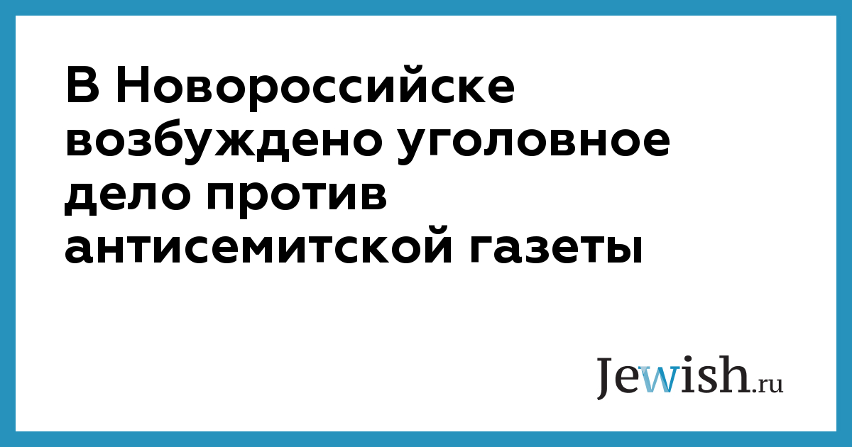 В Новороссийске возбуждено уголовное дело против антисемитской газеты