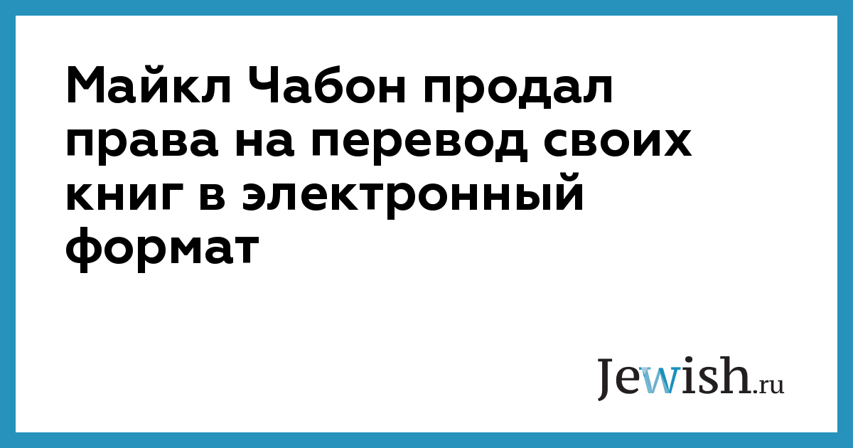 Майкл Чабон продал права на перевод своих книг в электронный формат