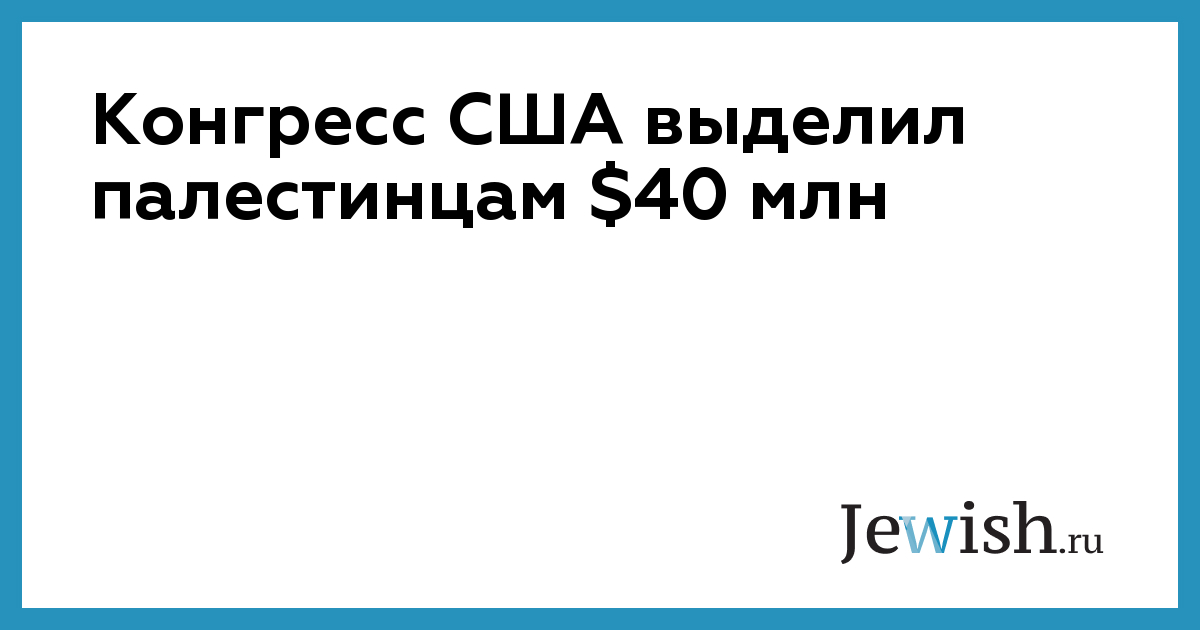Конгресс США выделил палестинцам $40 млн