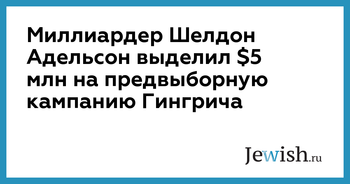 Миллиардер Шелдон Адельсон выделил $5 млн на предвыборную кампанию Гингрича