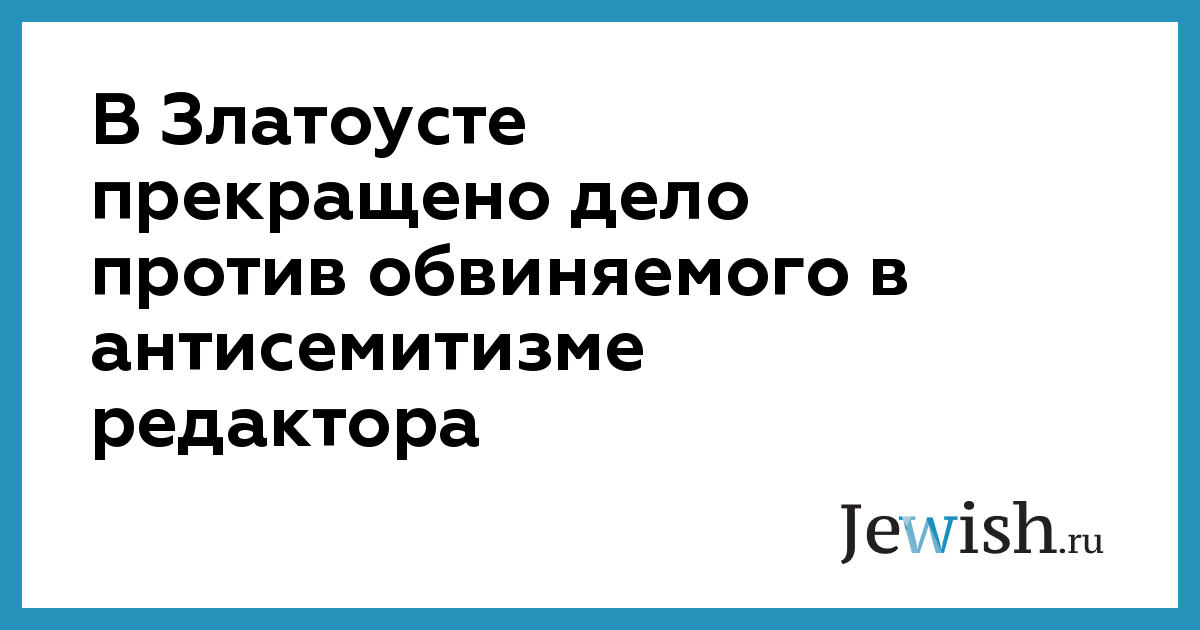 В Златоусте прекращено дело против обвиняемого в антисемитизме редактора