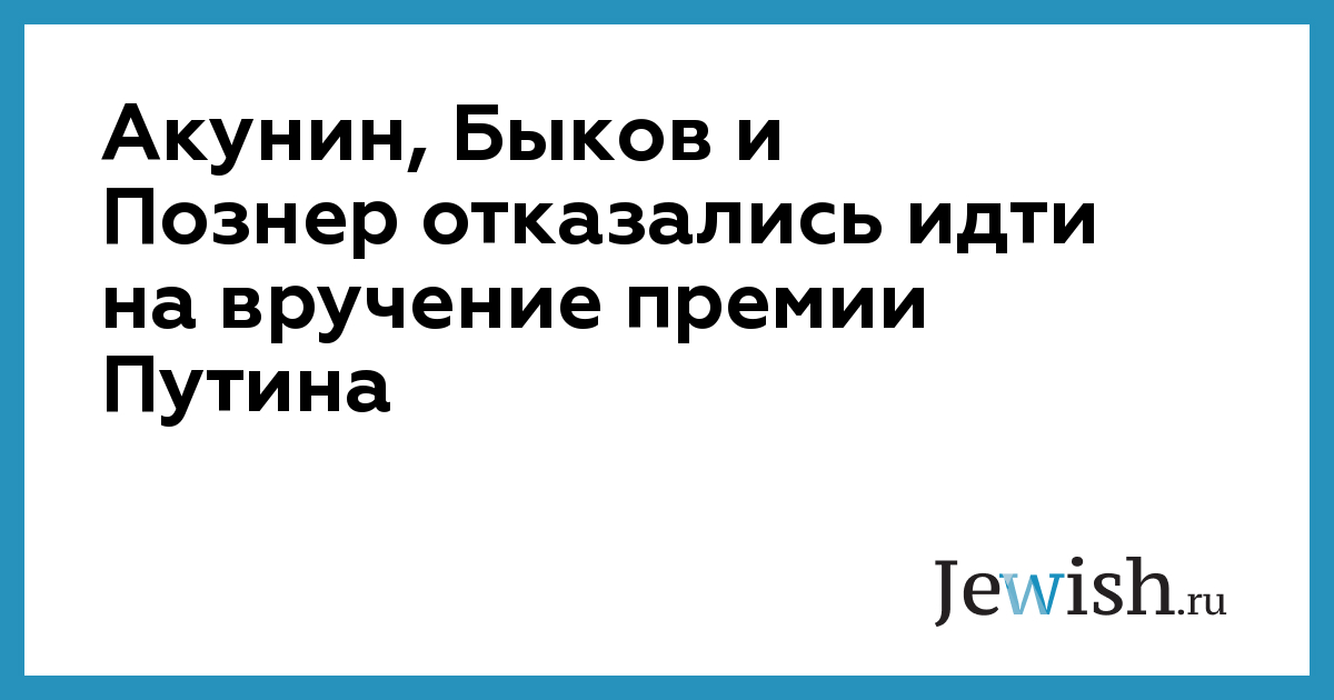 Акунин, Быков и Познер отказались идти на вручение премии Путина