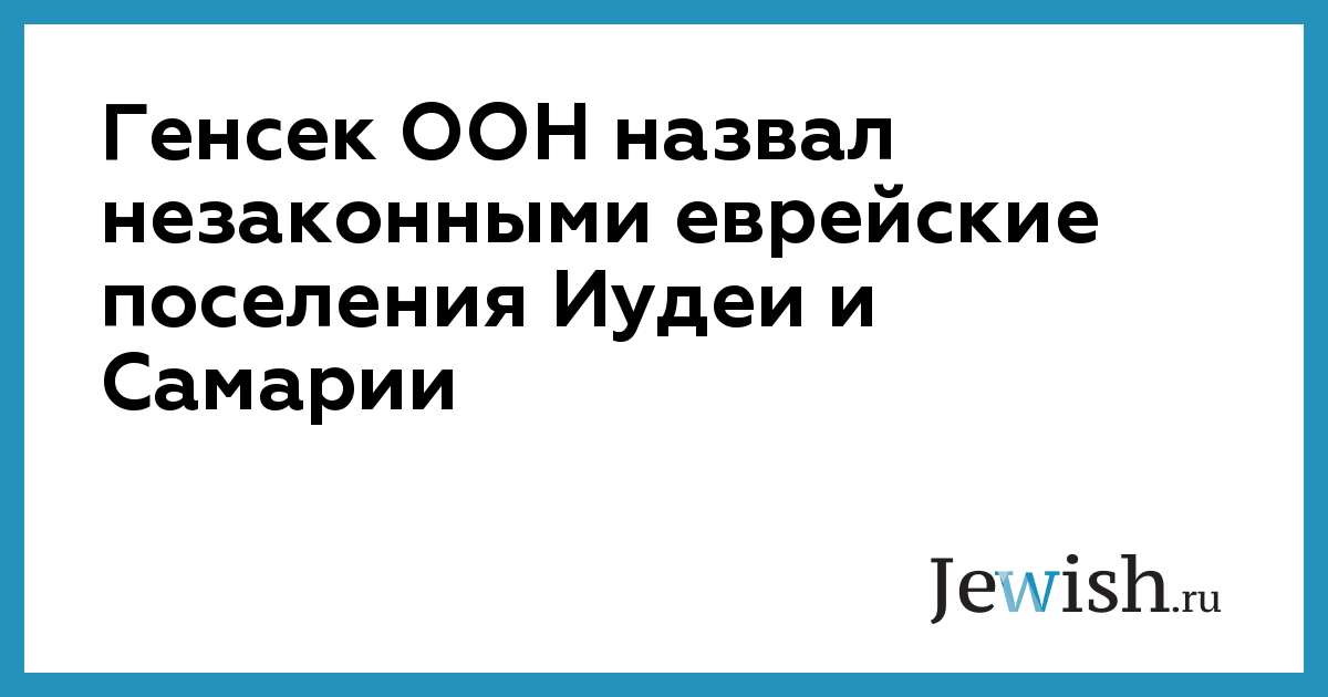 Генсек ООН назвал незаконными еврейские поселения Иудеи и Самарии