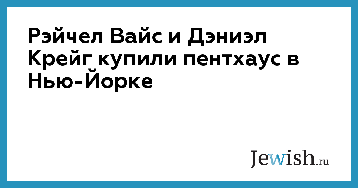 Рэйчел Вайс и Дэниэл Крейг купили пентхаус в Нью-Йорке