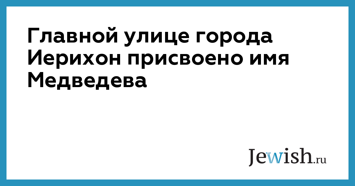 Главной улице города Иерихон присвоено имя Медведева