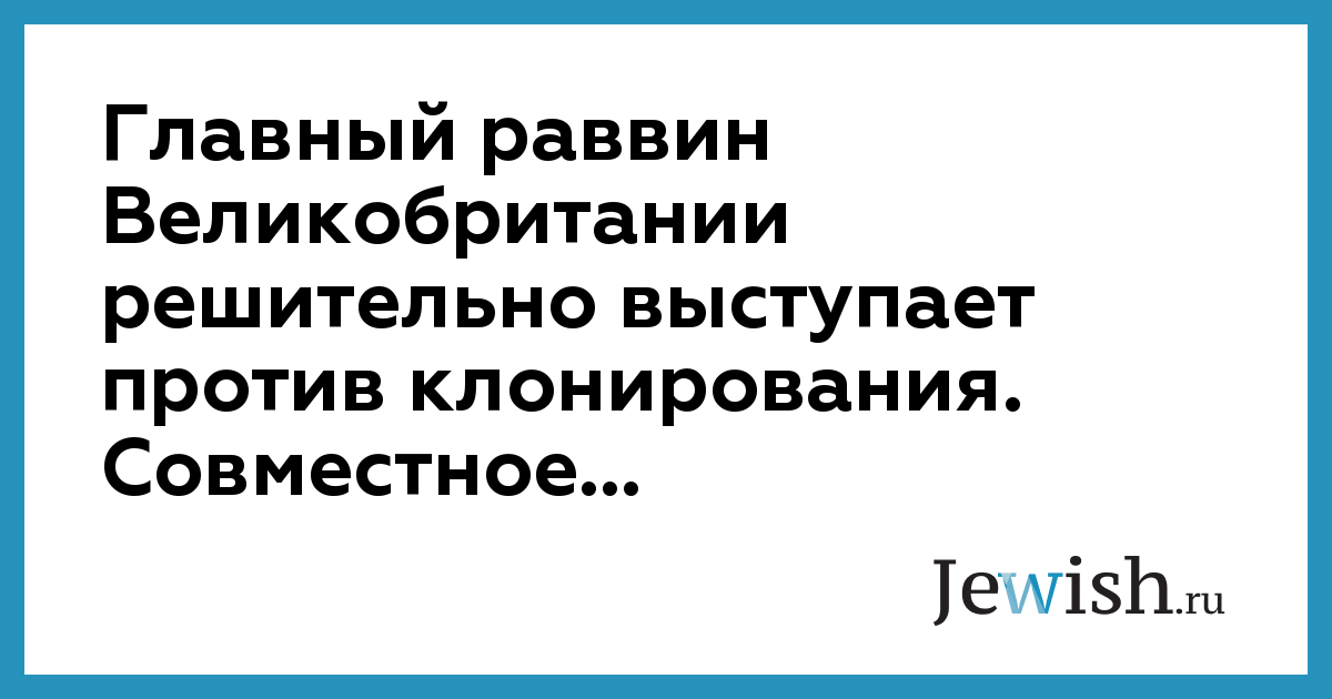 Главный раввин Великобритании решительно выступает против клонирования. Совместное...