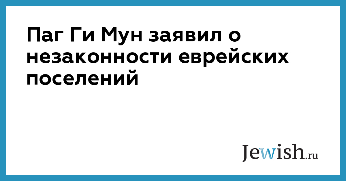 Паг Ги Мун заявил о незаконности еврейских поселений