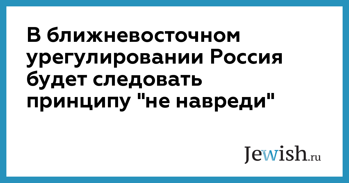 В ближневосточном урегулировании Россия будет следовать принципу "не навреди"