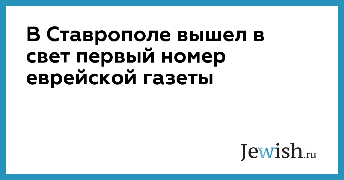 В Ставрополе вышел в свет первый номер еврейской газеты