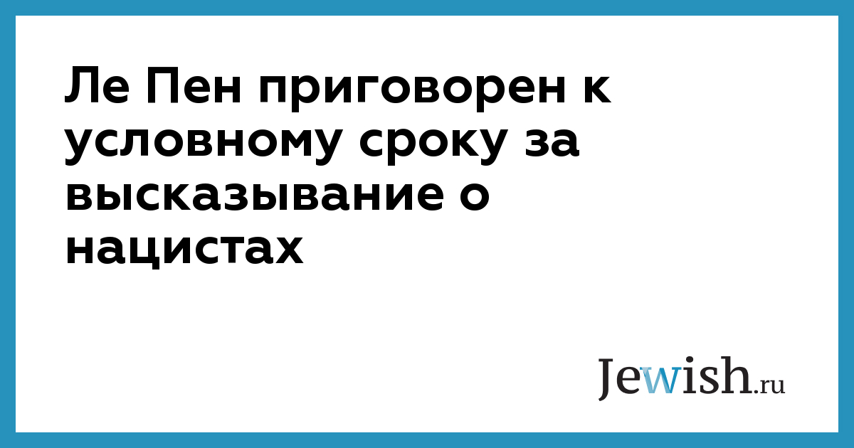 С 2005 года и до сих пор дело рассматривалось судами разных инстанций, и в конце концов Верховный суд определил наказание Жану-Мари Ле Пену: он приговорен у трем месяцам лишения свободы условно и штрафу в размере 10 тыс евро.