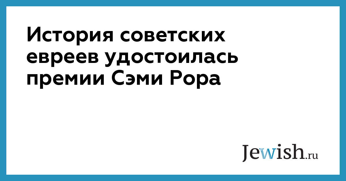 Напомним, премия Сэми Рора присуждается авторам "за способность внести серьезный вклад в развитие еврейской литературы".
