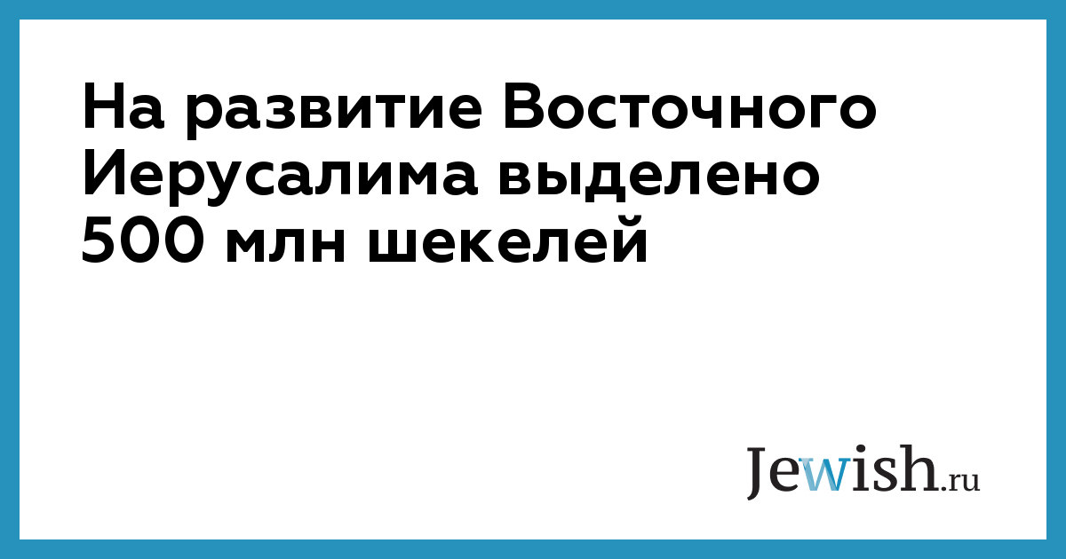 На развитие Восточного Иерусалима выделено 500 млн шекелей