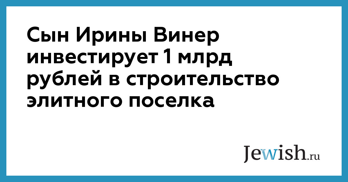 Сын Ирины Винер инвестирует 1 млрд рублей в строительство элитного поселка