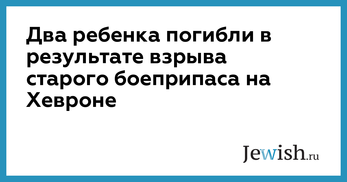 Два ребенка погибли в результате взрыва старого боеприпаса на Хевроне