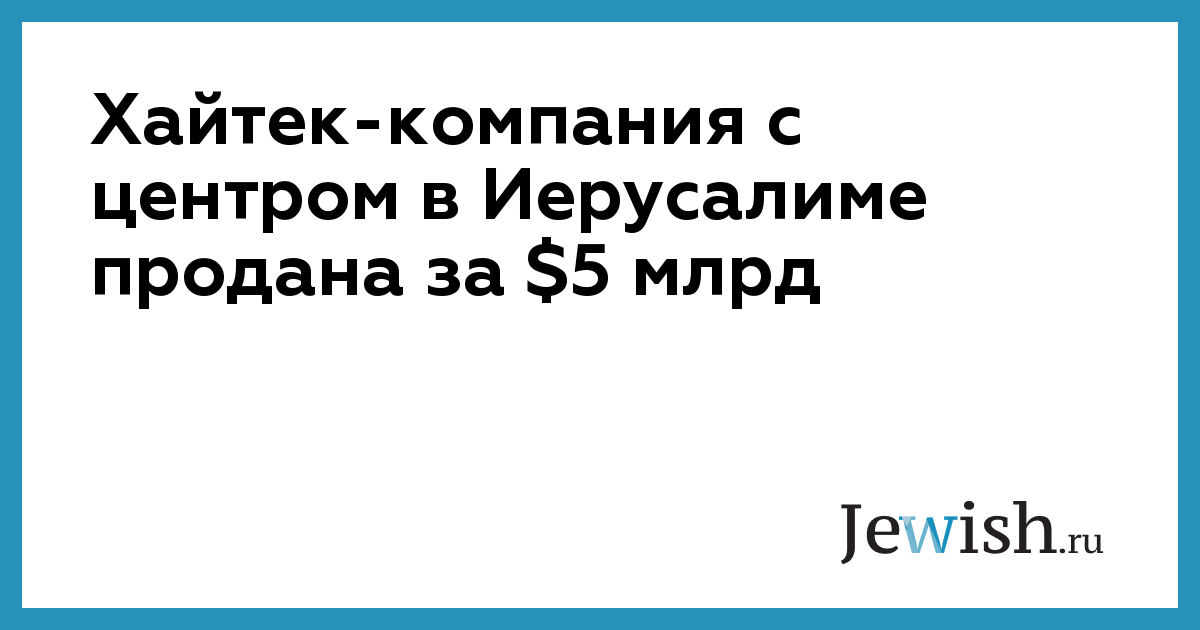 Хайтек-компания c центром в Иерусалиме продана за $5 млрд