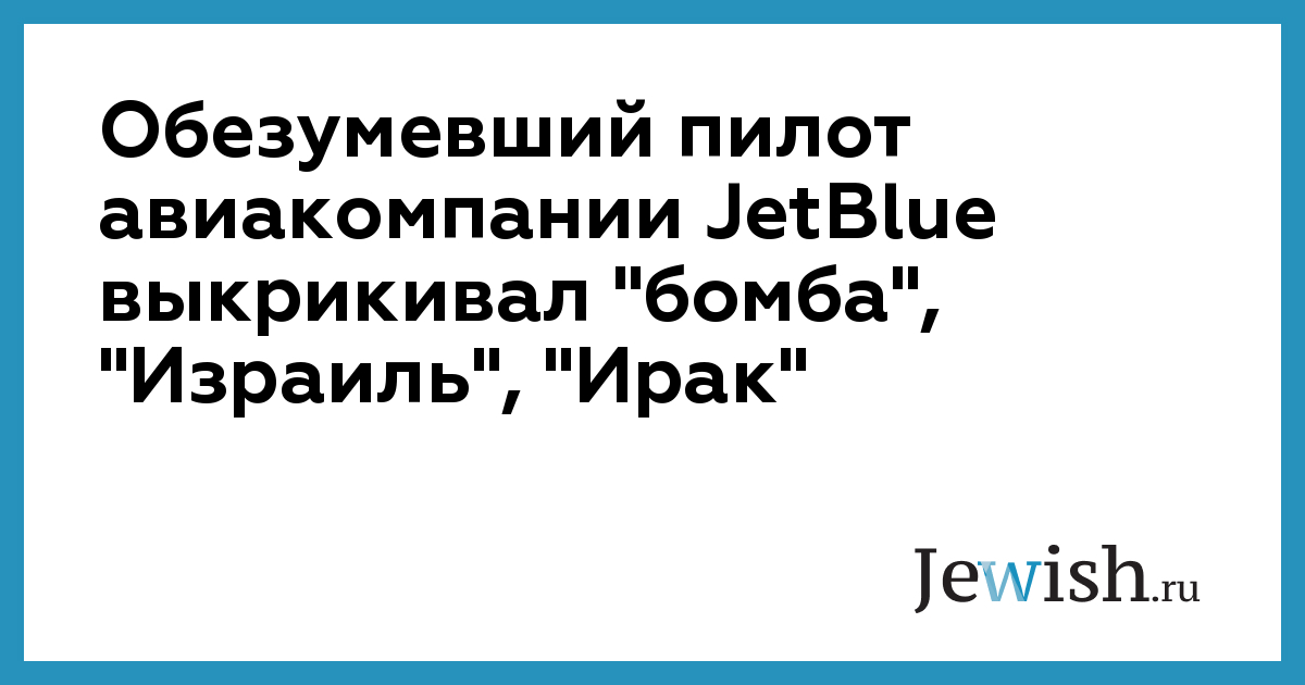 Обезумевший пилот авиакомпании JetBlue выкрикивал "бомба", "Израиль", "Ирак"