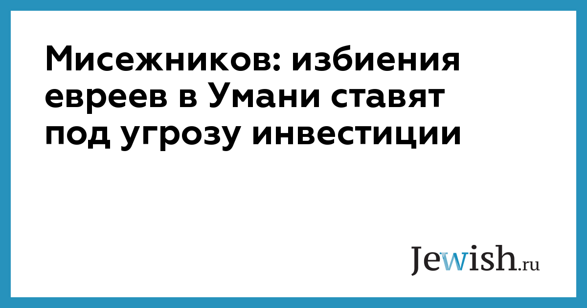 Мисежников: избиения евреев в Умани ставят под угрозу инвестиции