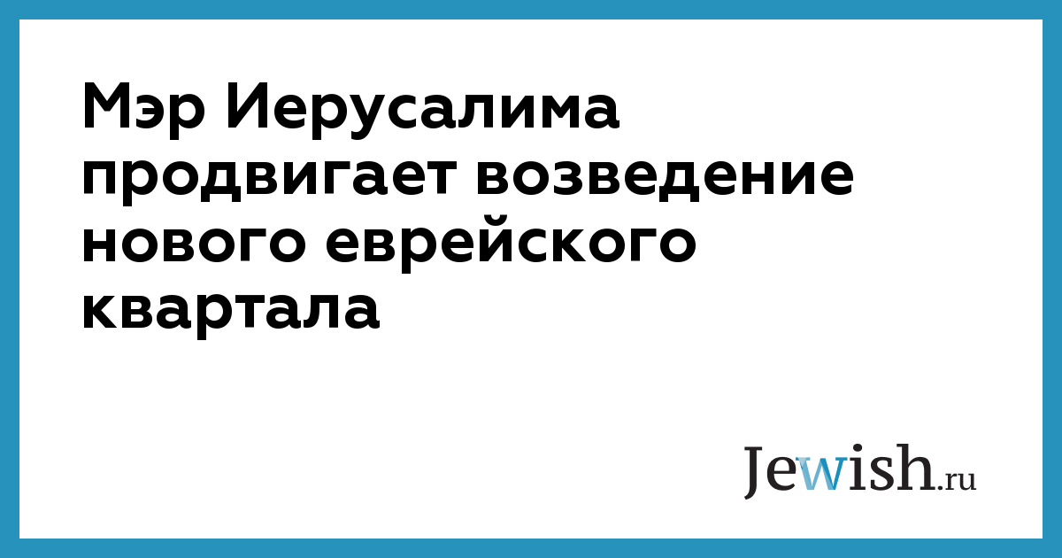 Мэр Иерусалима продвигает возведение нового еврейского квартала