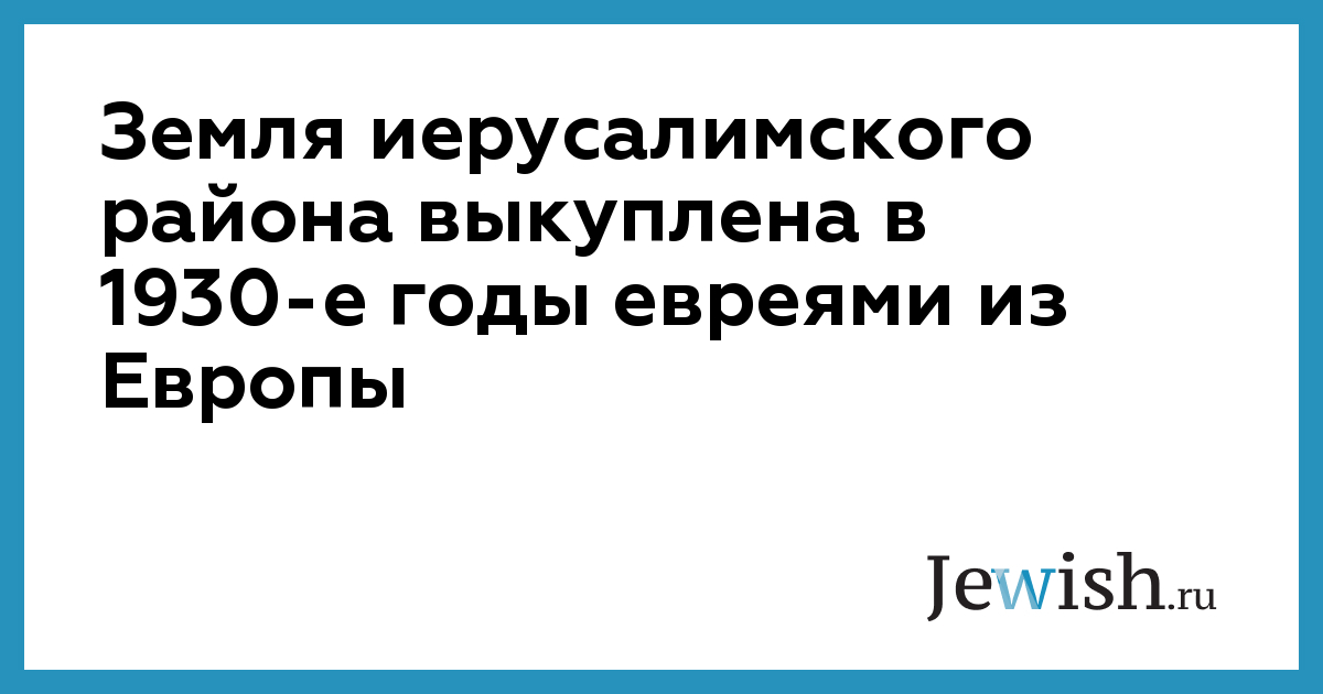 Земля иерусалимского района выкуплена в 1930-е годы евреями из Европы