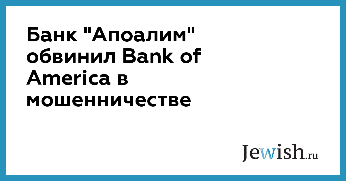 Банк "Апоалим" обвинил Bank of America в мошенничестве