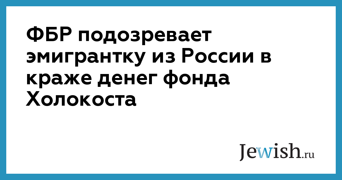ФБР подозревает эмигрантку из России в краже денег фонда Холокоста