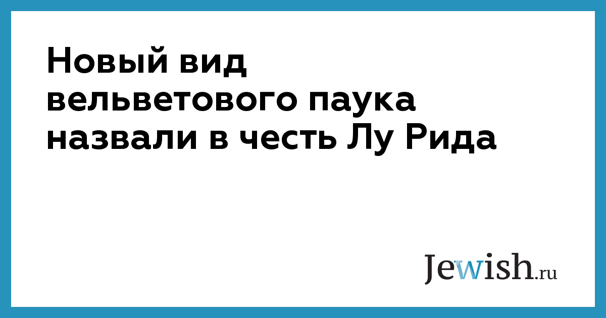 Новый вид вельветового паука назвали в честь Лу Рида