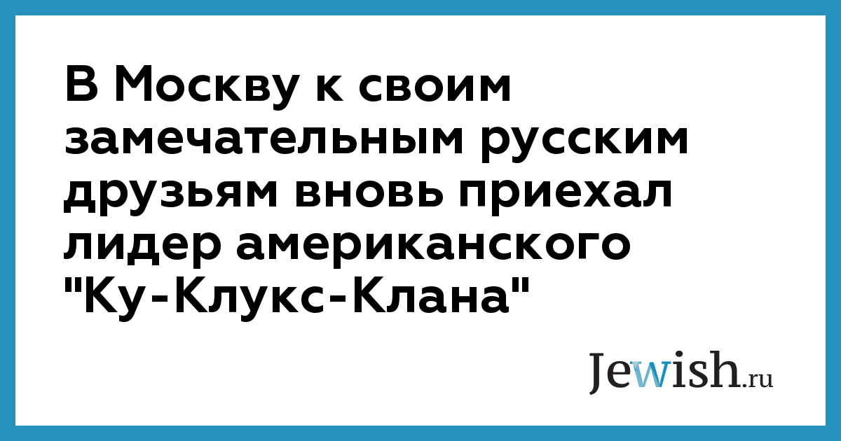 В Москву к своим замечательным русским друзьям вновь приехал лидер американского "Ку-Клукс-Клана"