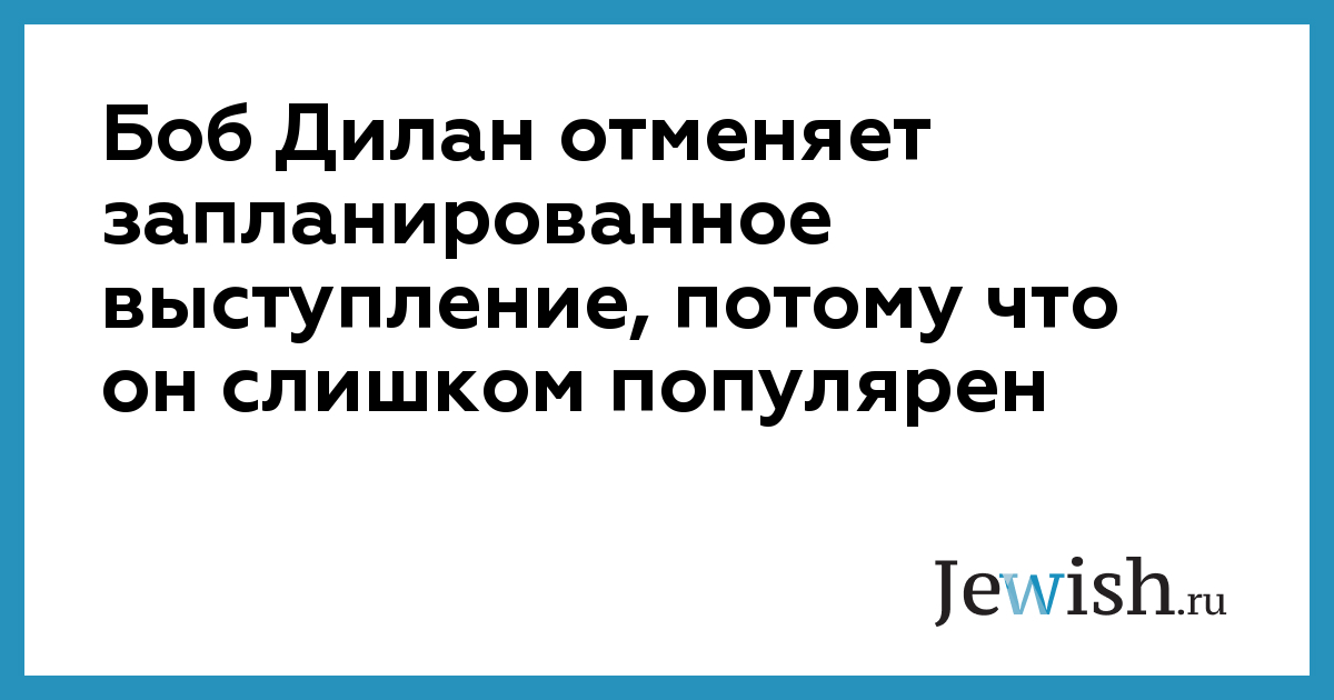 Боб Дилан отменяет запланированное выступление, потому что он слишком популярен