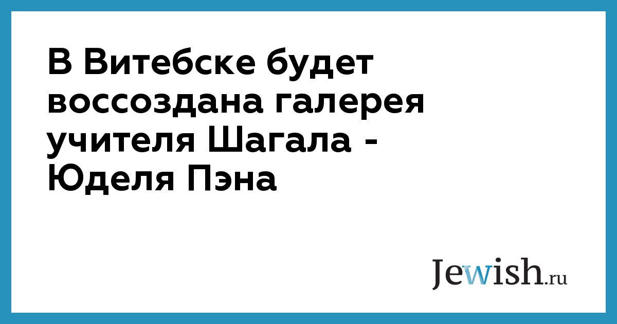 В Витебске будет воссоздана галерея учителя знаменитого еврейского художника Марка Шагала, также известного художника-еврея Юделя Пэна.