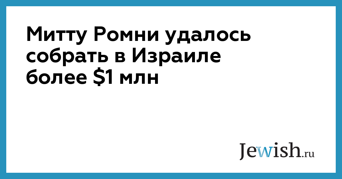 Митт Ромни в ходе своего предвыборного тура в Израиле смог собрать более миллиона долларов. На мероприятие по сбору средств в Иерусалиме, в частности, приехали около 40 иностранных спонсоров, каждый из которых выложил на предвыборную кампанию политика от 25-ти до 50 тысяч долларов.