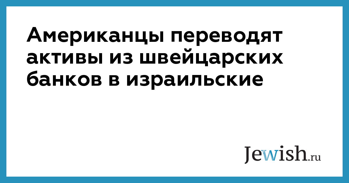 Американцы переводят активы из швейцарских банков в израильские