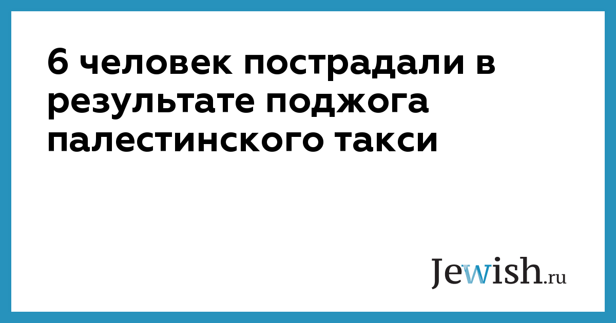Шесть человек пострадали в результате поджога палестинского такси с помощью бутылки с зажигательной смесью, произошедшего минувшей ночью на дороге между поселениями Бат-Аин и Гваот в Гуш-Эционе, сообщает радиостанция "Коль Исраэль".