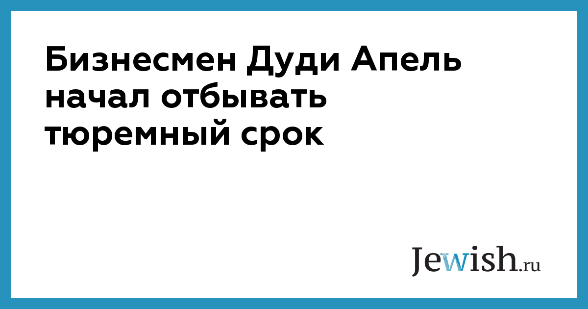 Известный бизнесмен Дуди Апель переступил 20 августа порог тюрьмы "Маасияху" и начал отбывать тюремный срок — три с половиной года. Именно такое наказание вынес мировой суд Тель-Авива, признав Апеля виновным в даче взятки и попытке подкупа муниципальных чиновников и высокопоставленного сотрудника Земельного управления.