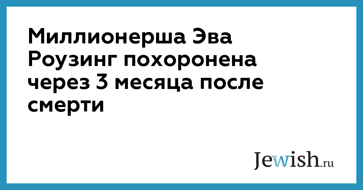 Эва Розуинг, супруга одного из богатейших людей Соединенного Королевства, была похоронена на еврейском кладбище в Южной Каролине. Тело было предано земле спустя почти три месяца после смерти. По информации газеты Daily Mail на похоронах, которые состоялись 9 августа, присутствовали лишь родители Эвы, Том и Нэнси Кимни, а также ее сестра Би.