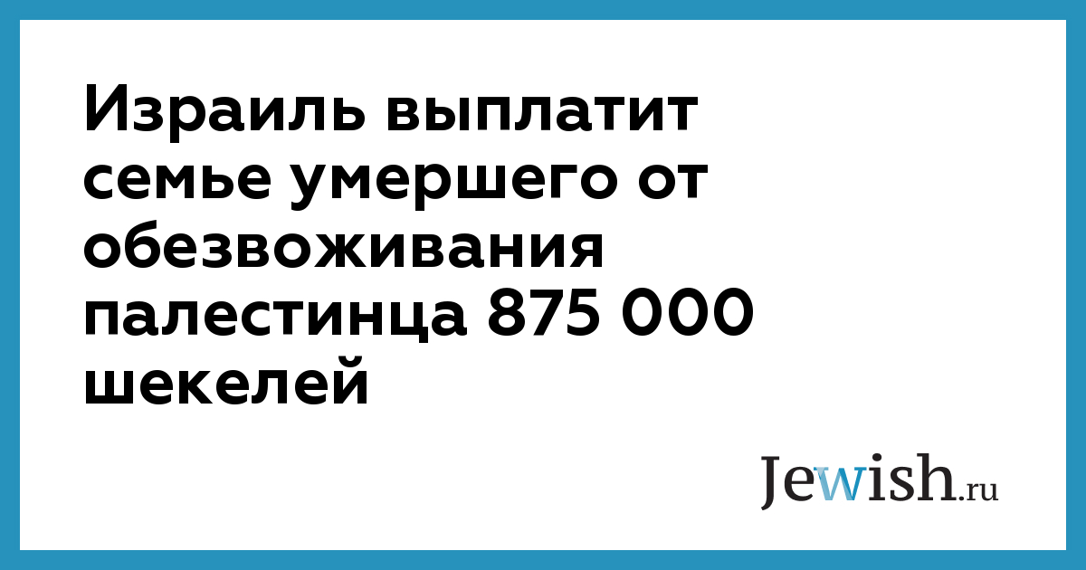 Государство Израиль выплатит семье палестинца, брошенного полицейскими на обочине и умершего от обезвоживания, компенсацию в размере 875 тысяч шекелей. Такое решение вынес окружной суд Петах-Тиквы по иску, поданному родственниками Омара Абу-Джарибана против полиции, государства Израиль, больницы "Шиба".