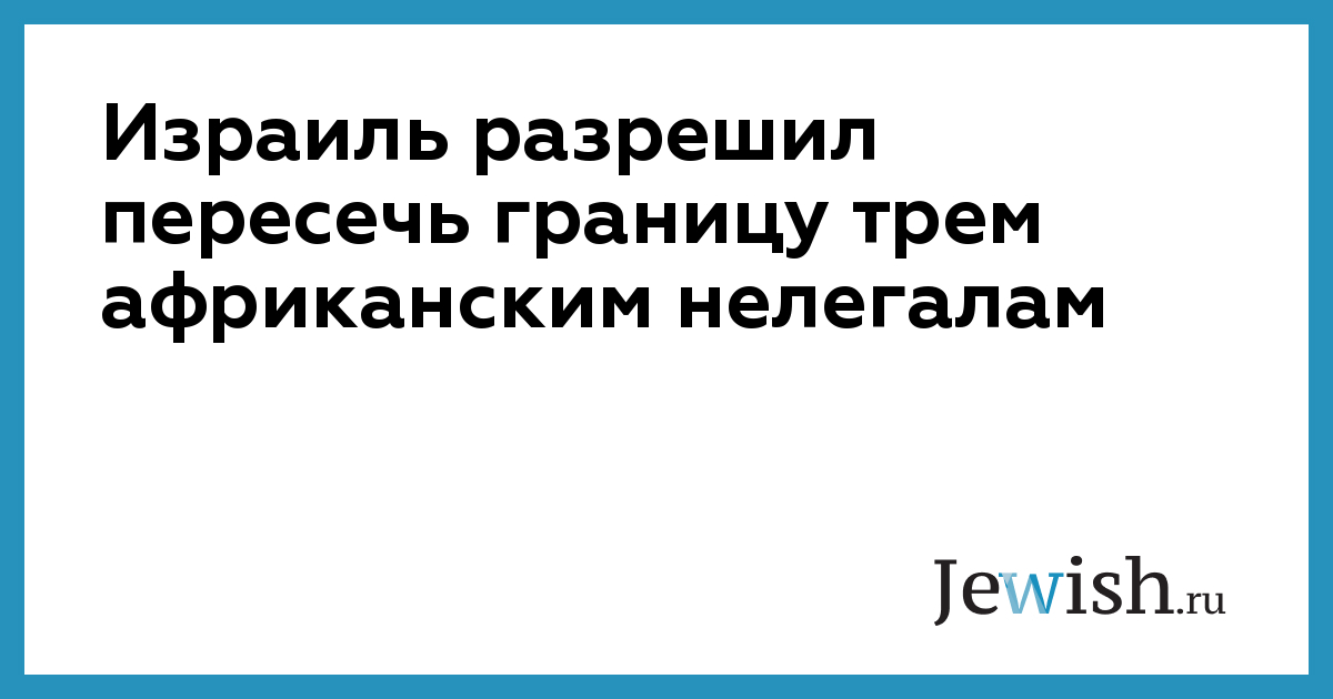 10-й канал ИТВ сообщил, что военнослужащие ЦАХАЛа пропустили на израильскую территорию троих нелегалов из группы африканцев, застрявших на границе с Египтом. По информации телеканала, судьба двух женщин и одного подростка, которым разрешили пересечь границу, решалась "на самом высоком уровне".