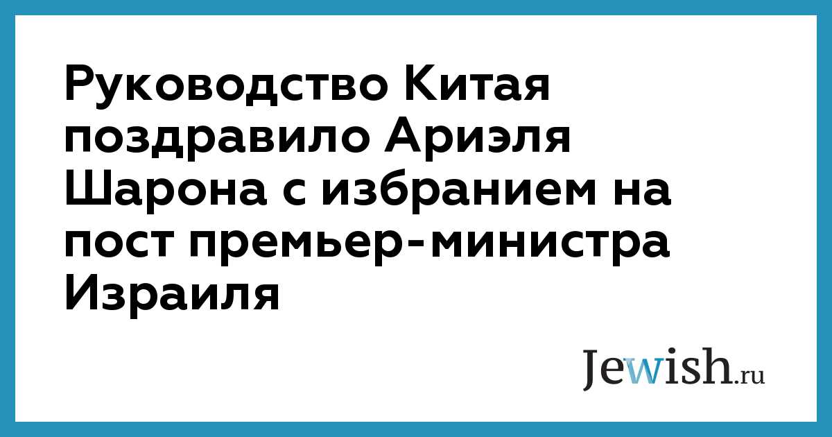 Руководство Китая поздравило Ариэля Шарона с избранием на пост премьер-министра Израиля