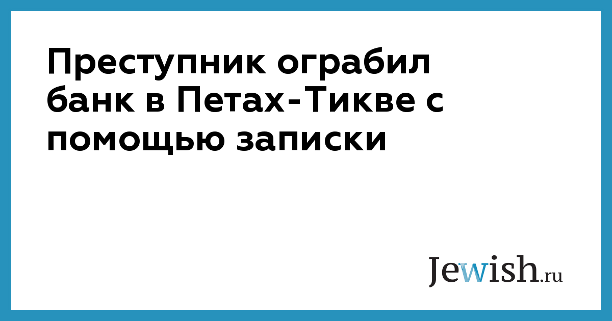 Преступник ограбил банк в Петах-Тикве с помощью записки