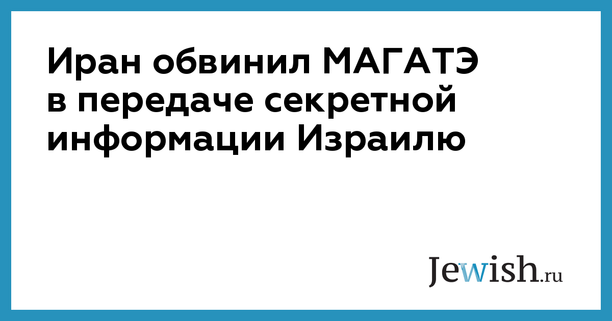 Иран обвинил МАГАТЭ в передаче секретной информации Израилю