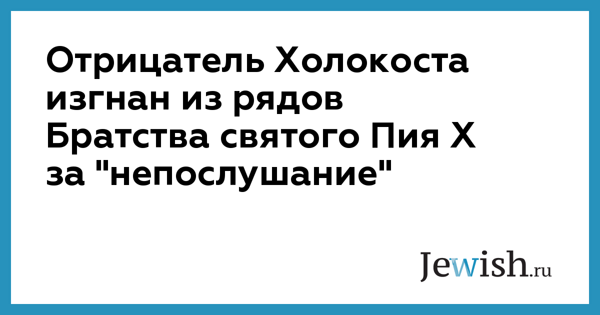 Отрицатель Холокоста изгнан из рядов Братства святого Пия Х за "непослушание"