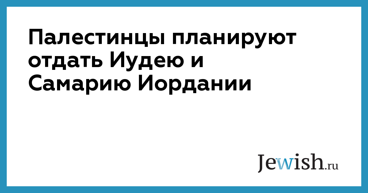 Палестинцы планируют отдать Иудею и Самарию Иордании