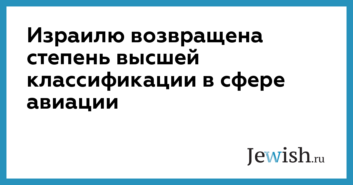 Федеральное управление гражданской авиации США (FAA) сообщило главе Управления гражданской авиации Израиля (РАТА), Гиоре Ром, о возвращении Израилю степени высшей классификации в области авиационной безопасности. Министр транспорта Исраэль Кац отметил, что вследствие повышения классификации в сфере авиации с израильских компаний, осуществляющих авиарейсы в США, будут сняты ограничения, существующие последние три с половиной года.