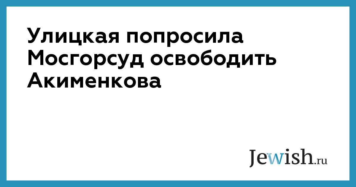 Людмила Улицкая попросила Мосгорсуд отменить решение Басманного суда, который оставил Владимира Акименкова под стражей. Адвокаты уже обжаловали это решение в вышестоящей инстанции, и она вправе изменить меру пресечения на залог или подписку о невыезде. Улицкая выразила готовность поручиться за Акименкова и внести за него залог.