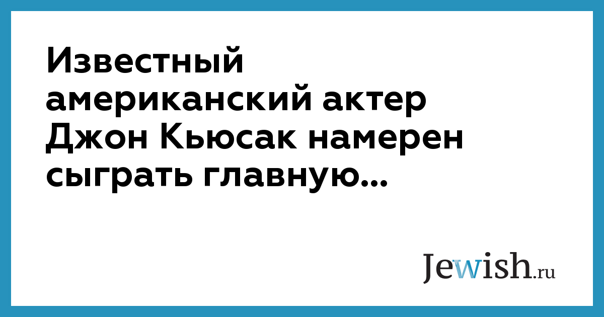 Известный американский актер Джон Кьюсак намерен сыграть главную...