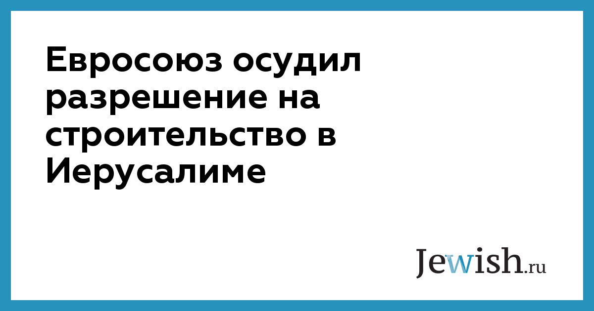 Евросоюз осудил разрешение на строительство в Иерусалиме