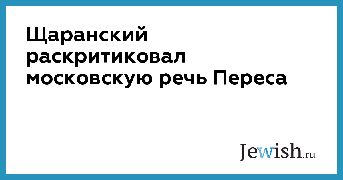 Щаранский, находящийся в настоящее время на Конгрессе федерации евреев Северной Америки в Балтиморе, в интервью радиостанции "Коль Исраэль" заявил, что ему непонятно, как лидер еврейского государства мог благодарить русский народ за "1000 лет гостеприимства". Глава "Сохнута" напомнил: "В течение нескольких сотен лет евреям было запрещено появляться в России. А потом было 300 лет, когда издали тысячу законов, у меня есть книга с тысячью законов против евреев, проживавших в России. И я уже не говорю о погромах".