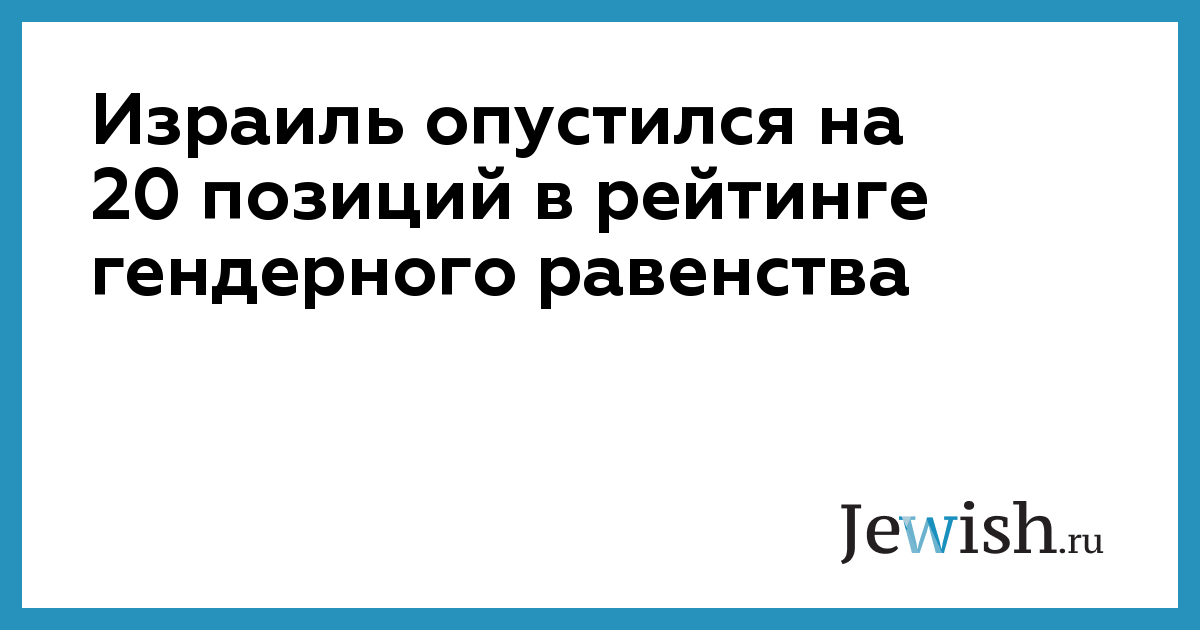 Израиль опустился на 56-е место из 135 возможных в рейтинге гендерного равенства, составляемом экспертами Всемирного экономического форума. В то время как большинство стран за последние шесть лет добились значительных успехов продвижения равенства полов, Израиль, наоборот, сделал несколько шагов назад.