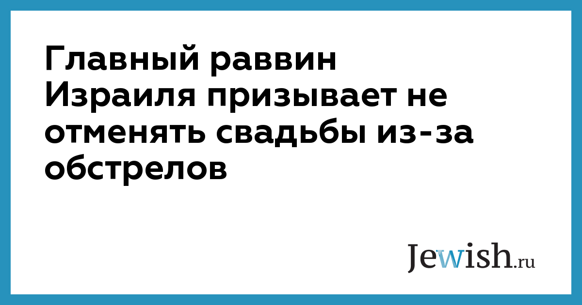 Главный раввин Израиля призывает не отменять свадьбы из-за обстрелов