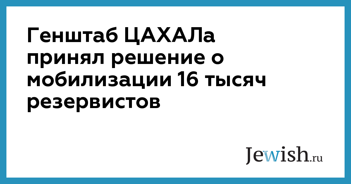 Генштаб ЦАХАЛа принял решение о мобилизации 16 тысяч резервистов