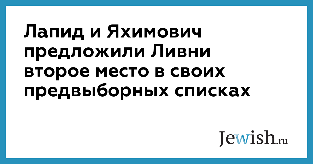 Лидер партии "Еш Атид" Яир Лапид в своем блоге в социальной сети Facebook написал о том, что он предложил второе место в предвыборном списке своей партии Ципи Ливни. Такое же предложение бывшему лидеру "Кадимы" сделала председатель партии "Авода" Шели Яхимович. Ципи Ливни, которая должна была на этой неделе официально сообщить о своем возвращении в большую политику, пока не ответила ни на одно из этих предложений.